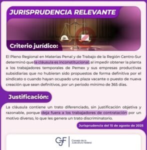 Inicio Consejo de la Judicatura Federal Infografías #JurisprudenciaRelevante | Un Pleno Regional resolvió que la cláusula del Contrato Colectivo...