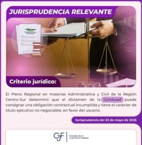 #JurisprudenciaRelevante | Un Pleno Regional resolvió que la #Condusef puede emitir títulos ejecutivos no negociables a favor del usuario, cuando se trata de transferencias electrónicas no reconocidas