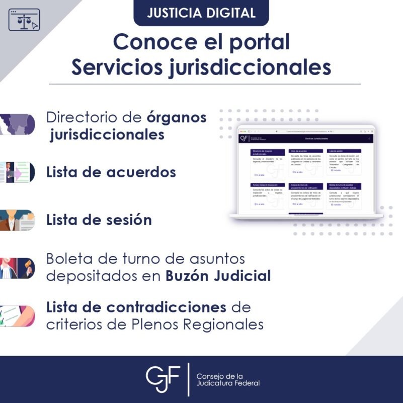 Inicio Consejo de la Judicatura Federal Infografías #JusticiaDigital | ¿Ya conoces el portal de servicios jurisdiccionales del #CJF?