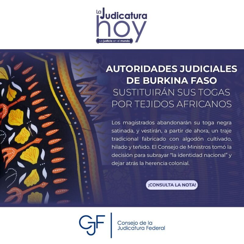 #JusticiaEnElMundo | En Burkina Faso, los magistrados dejarán de usar togas y vestirán un traje tradicional fabricado con algodón con el fin de resaltar la identidad nacional.