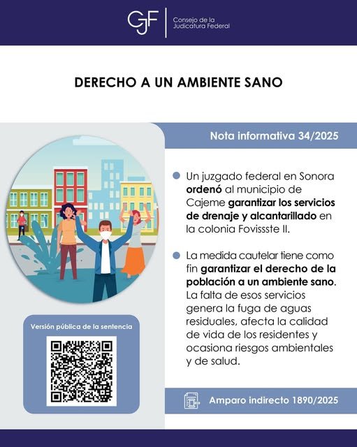 Consejo de la Judicatura FederalInfografías Juzgado ordena a municipio de Cajeme garantizar servicios de drenaje y alcantarillado en la colonia Fovissste II Por Araceli Bastida - agosto 24, 2025 0 FacebookTwitterPinterestLinkedinReddItEmailWhatsAppTelegramVK