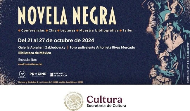 La Secretaría de Cultura del Gobierno de México, a través de la Dirección General de Bibliotecas, invita a acercarse al género literario de la novela negra a través del Festival de la Novela Negra, que se realizará en la Biblioteca de México.