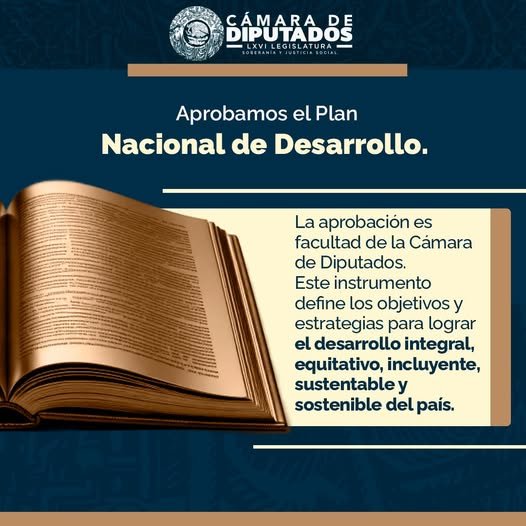 La Cámara de Diputados aprobó el #PlanNacionalDeDesarrollo, documento que precisa los objetivos nacionales, la estrategia y las prioridades del desarrollo integral, equitativo, incluyente, sustentable y sostenible del país.