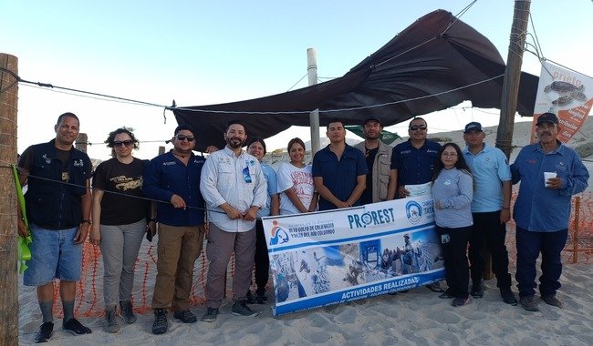 El campamento, ubicado al norte de San Felipe, Baja California, cuenta con el apoyo del Programa para la Protección y Restauración de Ecosistemas y Especies Prioritarias (PROREST) y es operado por un grupo de 17 personas (nueve mujeres y ocho hombres), quienes se han capacitado y equipado con herramientas e insumos para proteger las anidaciones de tortugas marinas y aumentar la tasa de supervivencia.