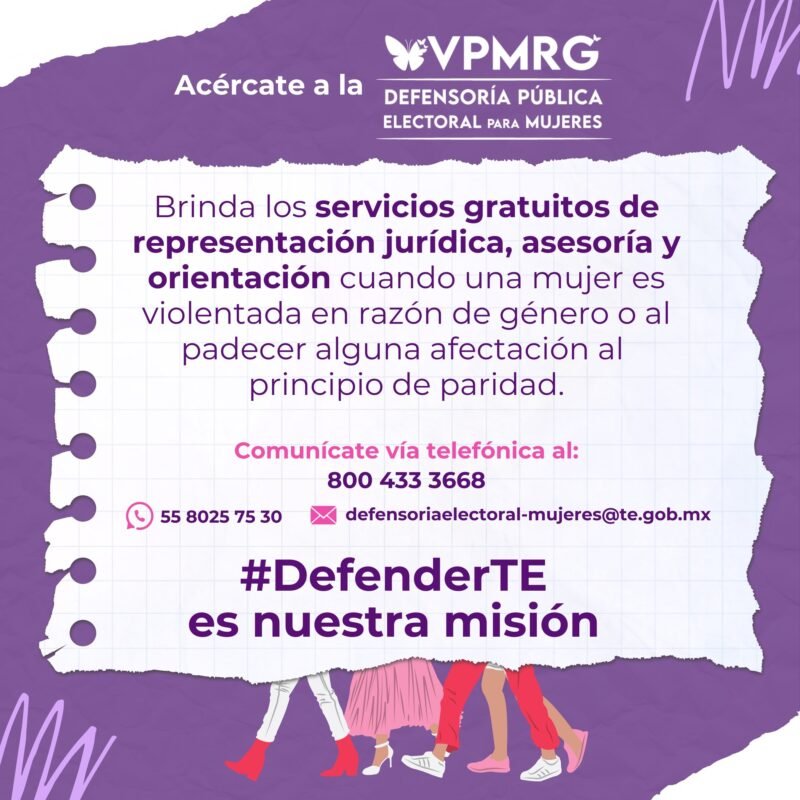 La Defensoría Pública Electoral para Mujeres ofrece estos servicios gratuitos para proteger tus derechos político – electorales.