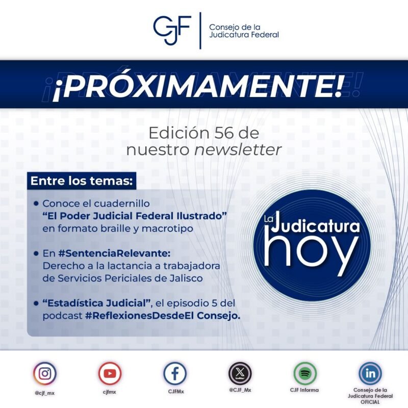 Consejo de la Judicatura FederalInfografías La edición 56 de #LaJudicaturaHoy llegará muy pronto Por Araceli Bastida - octubre 14, 2024 0 FacebookTwitterPinterestLinkedinReddItEmailWhatsAppTelegramVK