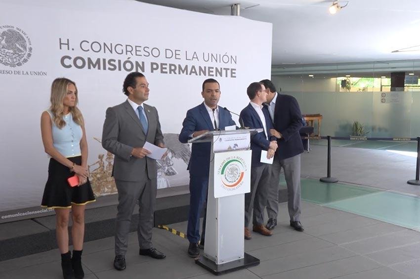 En conferencia de prensa, en el Senado de la República, en el marco de la Comisión Permanente, y acompañado por el coordinador de las senadoras y senadores del PAN, Ricardo Anaya Cortés y el senador Enrique Vargas del Villar, dijo que impulsarán comisiones de vigilancia y denunciarán el fraude en la elección de personas juzgadoras.