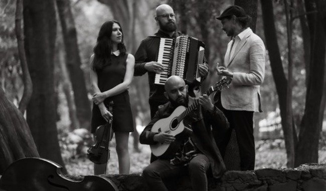 El recinto del Instituto Nacional de Bellas Artes y Literatura (INBAL) recibe al grupo integrado por Clara Sinou: violín, voz y dirección musical; Alex Daniels “Basasa”: acordeonista y compositor; Leo Cortés: contrabajo; y Héctor Luna: guitarrista.