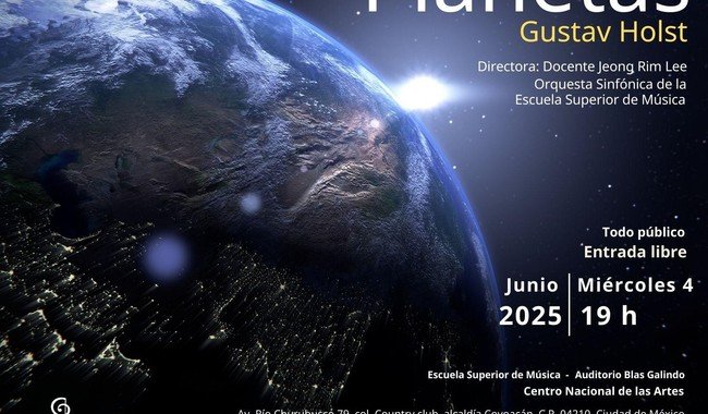La Orquesta Sinfónica de la Escuela Superior de Música (ESM), perteneciente a la Subdirección General de Educación e Investigación Artísticas (SGEIA) del Instituto Nacional de Bellas Artes y Literatura (INBAL), ofrecerá su concierto de fin de semestre con la interpretación de la obra Los planetas, del compositor británico Gustav Holst, el próximo 4 de junio a las 19 horas, en el Auditorio Blas Galindo del Centro Nacional de las Artes.