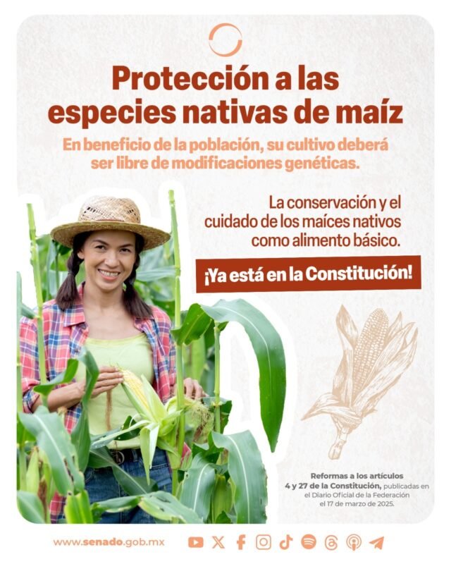 Senado de la RepublicaInfografías La reforma por la cual se protege el maíz nativo, aprobada en el Senado, ya forma parte de la Constitución. Por Araceli Bastida - marzo 18, 2025 0 FacebookTwitterPinterestLinkedinReddItEmailWhatsAppTelegramVK
