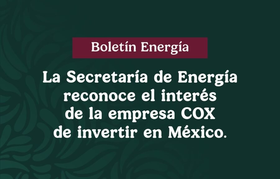 La Secretaría de Energía reconoce el interés de la empresa COX de invertir en México