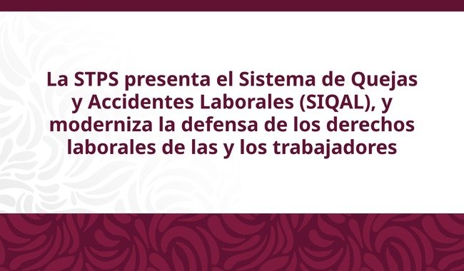 La Secretaría del Trabajo y Previsión Social (STPS) anunció la puesta en marcha del Sistema de Quejas y Accidentes Laborales (SIQAL), una plataforma informática gratuita que permitirá a las personas trabajadoras y ciudadanía en general denunciar violaciones a los derechos laborales o reportar accidentes ocurridos en los centros de trabajo.
