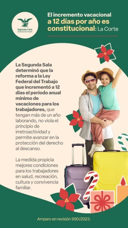 | #LaCorte determinó que es constitucional el incremento a 12 días del período vacacional que establece la reforma a la Ley Federal del Trabajo.