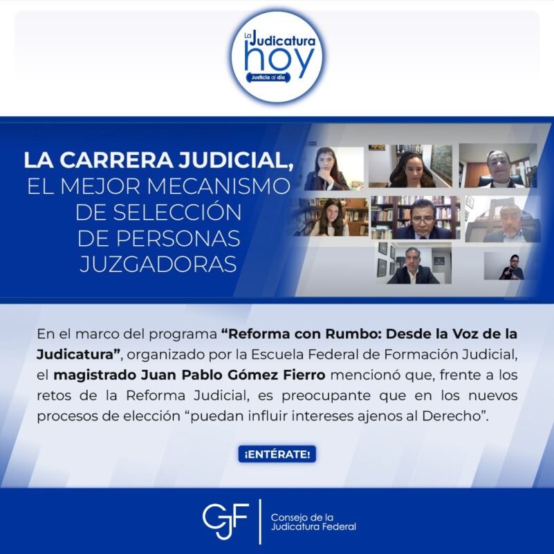 #LaJudicaturaHoy | El magistrado Juan Pablo Gómez Fierro habló sobre los retos de la #ReformaJudicial en el marco del programa “Reforma con Rumbo: Desde la Voz de la Judicatura”, organizado por la Escuela Federal de Formación Judicial.