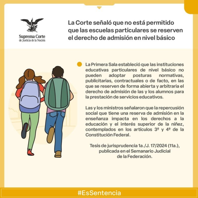 Las escuelas particulares de nivel básico no pueden reservarse el derecho de admisión de estudiantes o familias que lo soliciten.
