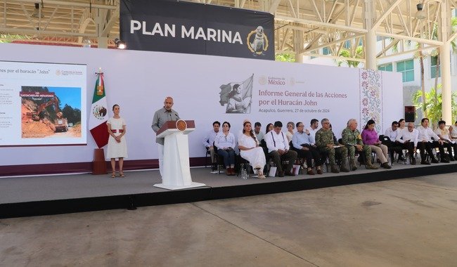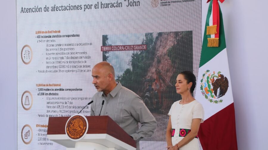 Durante el “Informe General de las Acciones por el Huracán John”, que encabezó la presidenta Claudia Sheinbaum Pardo, en compañía de la gobernadora de Guerrero, Evelyn Salgado Pineda, y el gobernador de Oaxaca, Salomón Jara Cruz, el Secretario destacó que tanto en Guerrero como en Oaxaca se tienen liberados todos los pasos por las Red Federal y Estatal para la llegada a los diferentes municipios, por lo que pasa la emergencia.