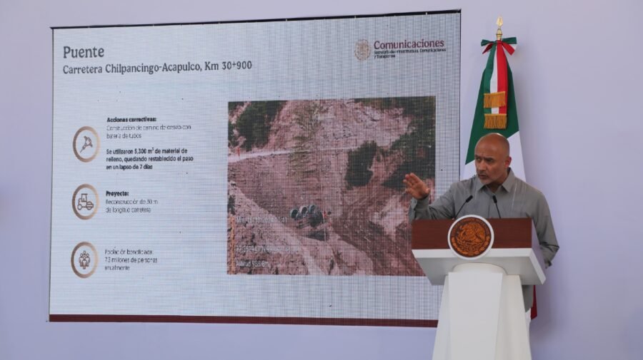Desde los primeros días en que el huracán afectó a esas entidades, la SICT implementó trabajos para liberar la Red Federal y se apoyó al gobierno de Guerrero en la Red Estatal