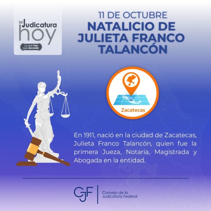 Inicio Consejo de la Judicatura Federal Infografías #LoQueHayQueRecordar | Conmemoramos el natalicio de Julieta Franco Talancón, quien fue la...