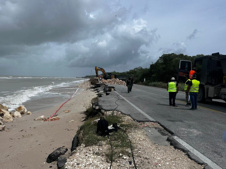 El Centro SICT-Campeche reportó que el tramo Isla Aguada-Champotón, km 107+000, de la carretera federal libre de peaje Ciudad del Carmen-Campeche, se vio afectado por los efectos del huracán Milton.