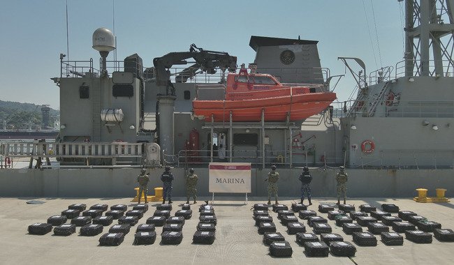 Marina asegura aproximadamente 3.2 toneladas de probable cocaína frente a las costas de Colima