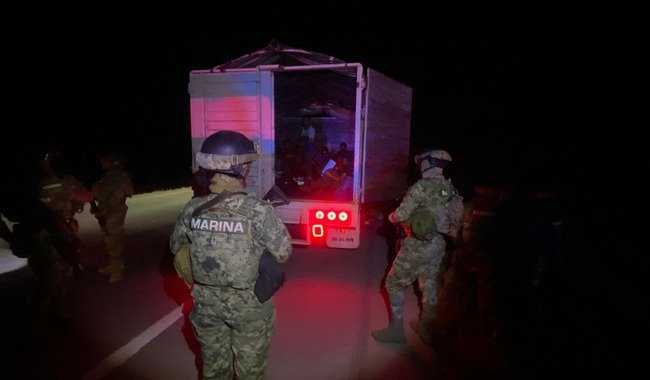 Ciudad Obregón, Sonora a 23 de octubre de 2023. – La Secretaría de Marina a través de la Armada de México, en coadyuvancia con la Guardia Nacional (GN) y el Instituto Nacional de Migración (INM), en el marco de la «Estrategia de Seguridad de los primeros 100 días« informa que, en días pasados, personal de la Fuerza de Tarea Interinstitucional Cajeme logró el rescate humanitario de 18 migrantes en la carretera de Ciudad Obregón – Navojoa, Sonora.