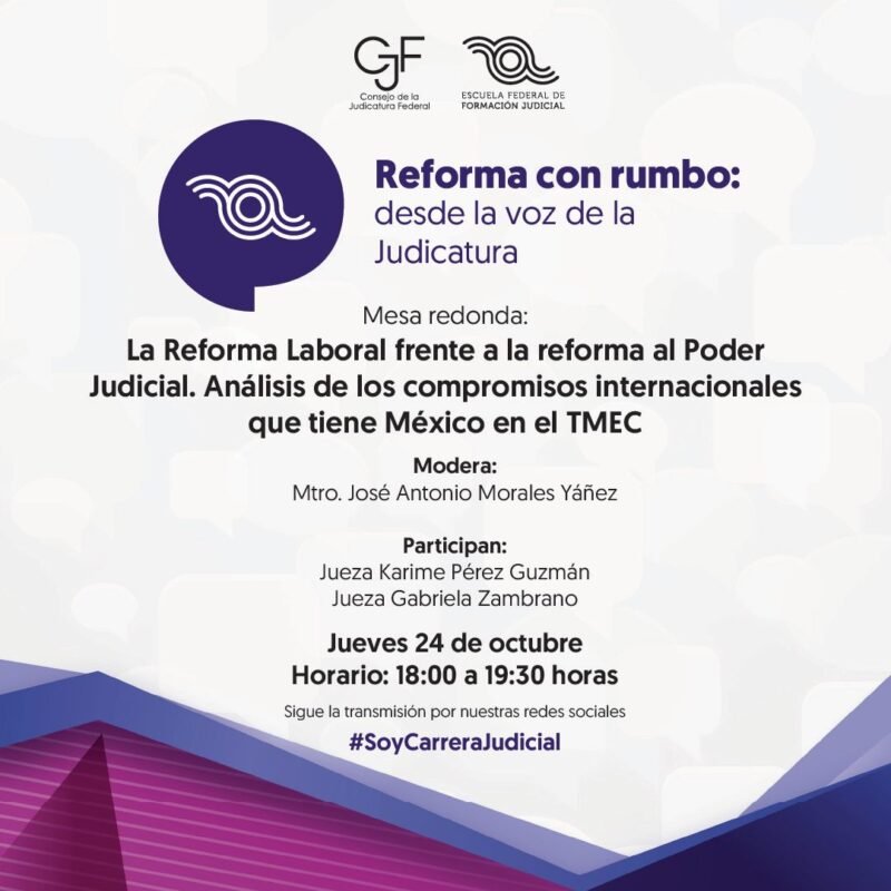 Consejo de la Judicatura FederalInfografías Mesa Redonda | La Reforma Laboral frente a la Reforma al Poder Judicial. Análisis de los compromisos internacionales que tiene México en el TMEC. Por Araceli Bastida - octubre 23, 2024 0 FacebookTwitterPinterestLinkedinReddItEmailWhatsAppTelegramVK