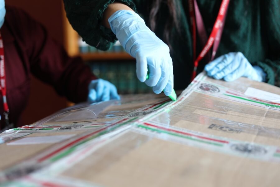 Después de la entrega realizada en las oficinas que ocupa la SRE, a través de su Consultoría Jurídica, el AGN trasladó el documento a sus instalaciones, en donde recibió a cronistas de Huejotzingo que fueron parte del proceso de repatriación para presenciar la apertura del embalaje del documento.