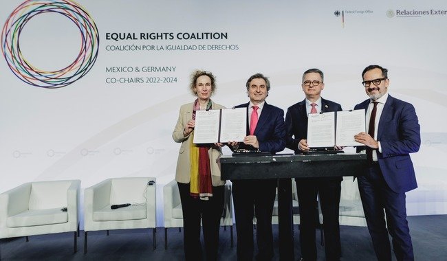 México y Alemania copresidieron la cuarta Conferencia de la Coalición por la Igualdad de Derechos (ERC, por sus siglas en inglés), en la que se suscribió una declaración conjunta que estableció acciones específicas para proteger los derechos humanos y las libertades fundamentales de todas las personas LGBTQI+, en contextos nacionales e internacionales.