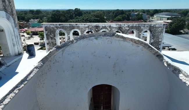 Después de una gestión, la cual incluyó diversas reuniones de trabajo y visitas al templo por parte de personal de las secciones de Monumentos Históricos y Conservación del Centro INAH Campeche; de las coordinaciones nacionales de Recursos Materiales y de Monumentos Históricos del INAH, así como de la aseguradora y de la empresa asignada para la realización de las obras, se acordó iniciar los trabajos el 9 de mayo de 2025, los cuales continuarán las próximas semanas, bajo la supervisión de personal especializado del instituto.