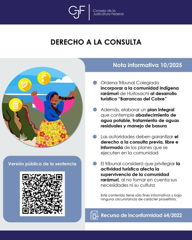 Consejo de la Judicatura FederalInfografías Ordena Tribunal Colegiado hacer efectiva la integración de comunidad indígena rarámuri al desarrollo turístico Por Araceli Bastida - abril 6, 2025 0 FacebookTwitterPinterestLinkedinReddItEmailWhatsAppTelegramVK