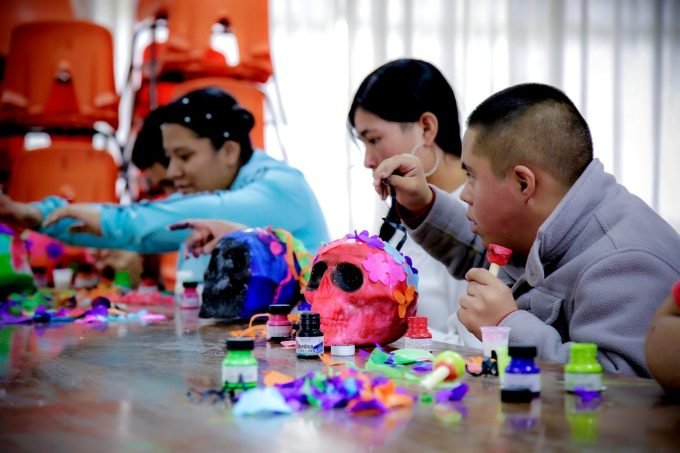 TOLUCA, Estado de México.- Con gran entusiasmo, estudiantes de educación básica demostraron su creatividad al elaborar calaveras decoradas, colibríes y pétalos de papel que forman parte de la Ofrenda Monumental de Día de Muertos, instalada en el Palacio de Gobierno.