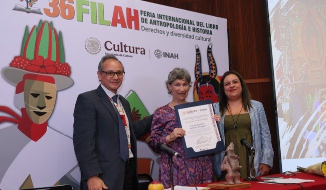 En el Auditorio Fray Bernardino de Sahagún del Museo Nacional de Antropología, con sonoros aplausos de fondo, la especialista recibió la distinción con su característica humildad, al cierre del VIII Coloquio de Conservadores del Patrimonio Cultural, efectuado el 22 de septiembre, en el marco de la 36 Feria Internacional del Libro de Antropología e Historia (FILAH).
