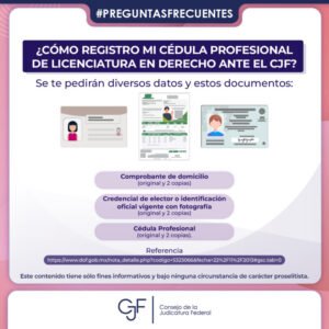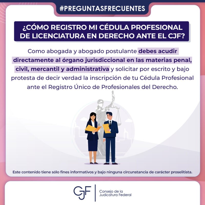 Inicio Consejo de la Judicatura Federal Infografías #PreguntasFrecuentes | ¿Cómo registrar tu cédula profesional de licenciatura en Derecho ante...
