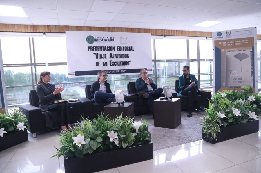Palacio Legislativo de San Lázaro, 23-08-2025.– El Espacio Cultural San Lázaro realizó la presentación del libro “Viaje Alrededor de Mi Escritorio” del poeta y ensayista Fernando Fernández.