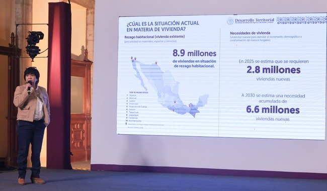 Durante la Conferencia Matutina que encabeza la presidenta Claudia Sheinbaum, la titular de Sedatu, Edna Vega Rangel explicó que se estima una inversión aproximada de 600 mil millones de pesos (mdp) en la construcción, mejoramiento y ampliación de viviendas, y precisó que se atenderá prioritariamente a mujeres jefas de familia, jóvenes, población indígena, y adultos mayores.