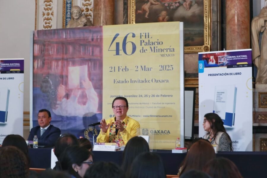 El magistrado De la Mata invitó a los estudiantes y público en general a adquirir esta obra que es gratuita, en el stand 1306 de la FIL del Palacio de Minería o descargarla mediante el QR ubicado en el reverso.