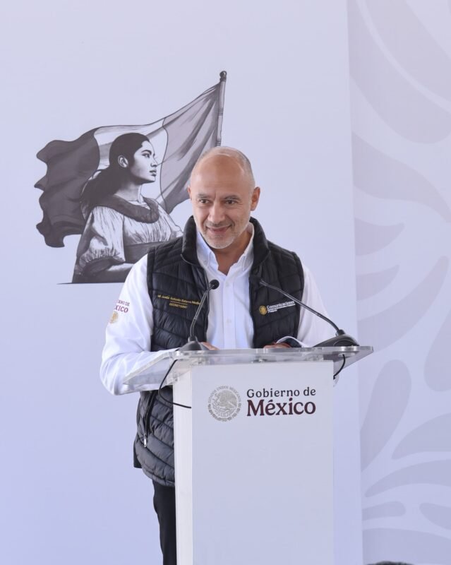 El secretario de Infraestructura, Comunicaciones y Transportes (SICT), Jesús Antonio Esteva Medina, acompañó a la presidenta Claudia Sheinbaum Pardo a la inauguración del Camino Artesanal Pata de Gallo-Santiago Teneraca (primera etapa).