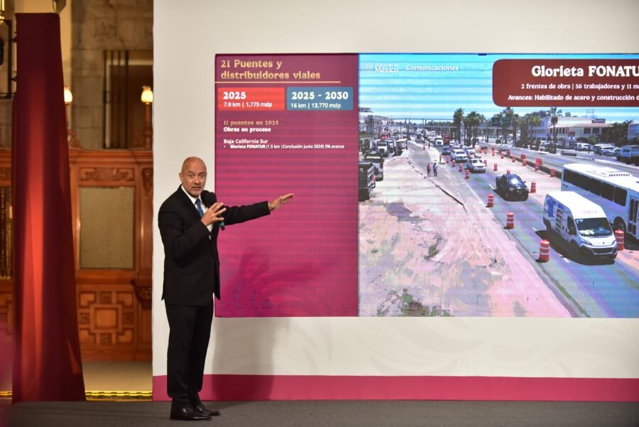 • 10 mil 254 mdp en 2025 para 2 mil 220 km distribuidos en 10 ejes prioritarios;