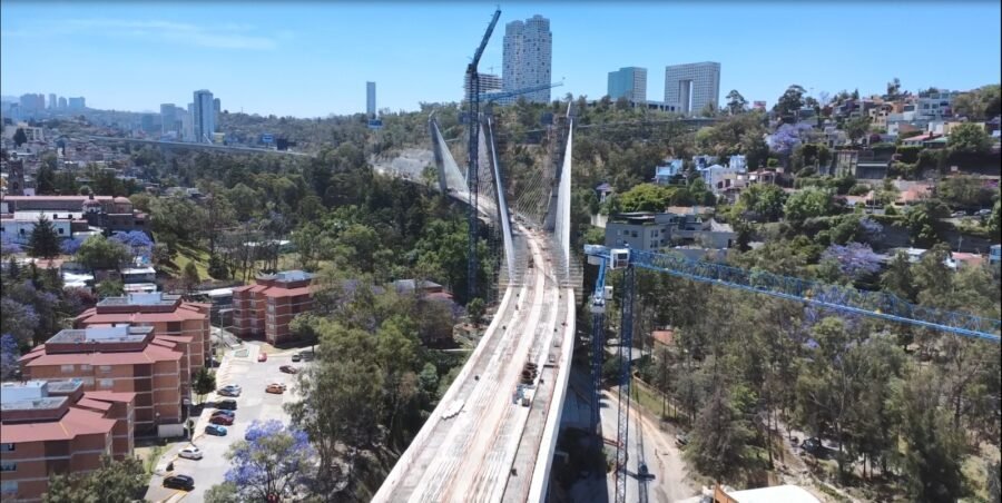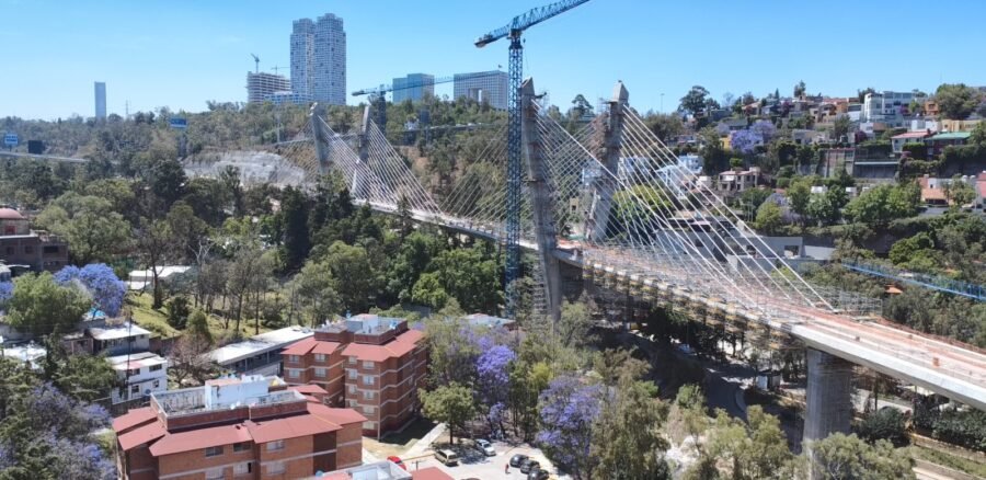 Ubicado junto a la Cuarta Sección del Bosque de Chapultepec y la Universidad de la Salud, el Puente Atirantado del Tren Interurbano México-Toluca, cuya construcción genera 350 fuentes de trabajo, cuenta con características férreas únicas en el mundo por su curvatura, pendiente y por formar parte de un servicio ferroviario.