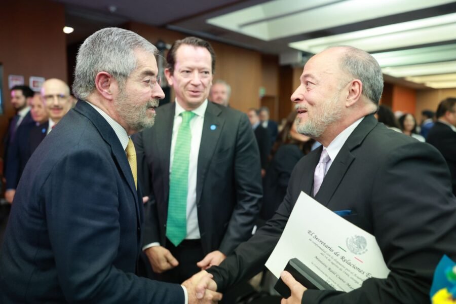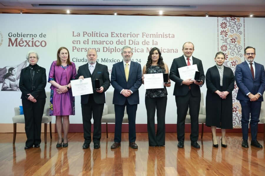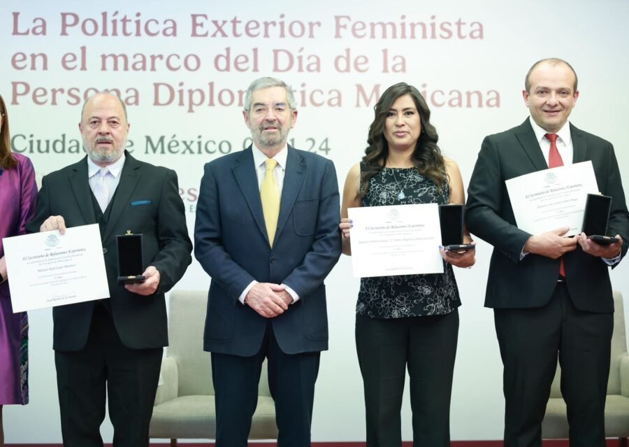 En el encuentro se entregó la condecoración Servicio Exterior Mexicano-25 años, instituida en 1946 para reconocer los años de servicio de las y los diplomáticos de carrera. “Esta presea significa haber dedicado un cuarto de siglo a servir a México dentro y fuera de sus fronteras”, dijo el canciller.