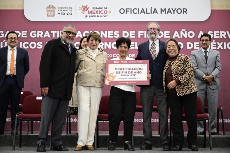 TOLUCA, Estado de México. – La Gobernadora del Estado de México, Delfina Gómez Álvarez encabezó la ceremonia de la Entrega de Reconocimientos y Gratificaciones de Fin de Año 2024, agradeciendo el desempeño y la dedicación de las más de 20 mil personas servidoras públicas del sector central y auxiliar del Poder Ejecutivo.