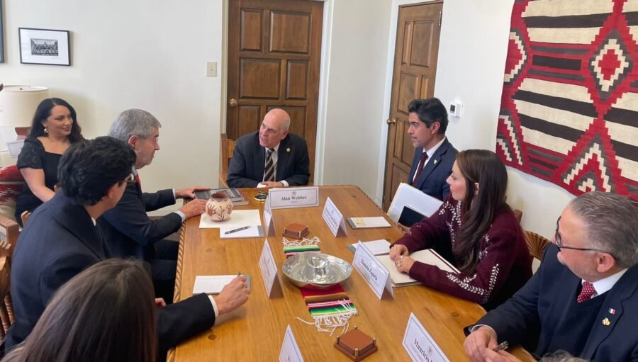 El canciller De la Fuente celebró también una reunión de trabajo con el alcalde de la capital, Alan Webber, quien le manifestó su compromiso de seguir apoyando a las comunidades migrantes al destacar las significativas contribuciones que realizan al estado, así como los lazos culturales y socioeconómicos que unen a esa localidad con nuestro país.