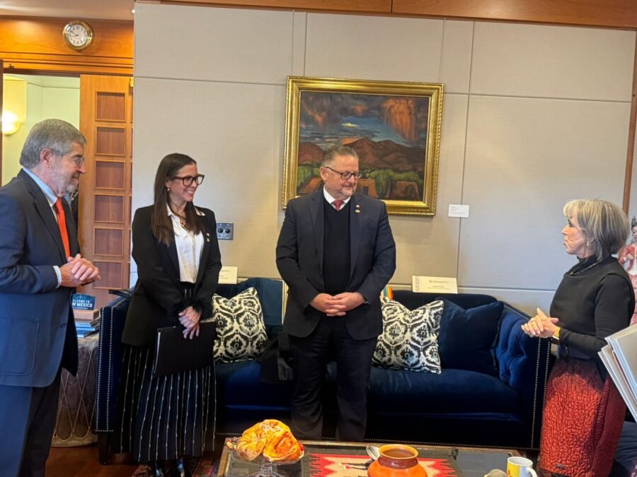 • Como parte de su visita de trabajo, el canciller Juan Ramón de la Fuente se reunió con la gobernadora Michelle Lujan Grisham, con quien coincidió en la importancia de seguir fortaleciendo el intercambio comercial y de reconocer las significativas contribuciones de la comunidad mexicana a ese estado fronterizo