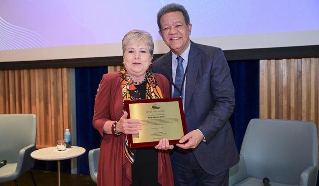 Al otorgarle el reconocimiento, el expresidente de la República Dominicana, Leonel Fernández Reyna, resaltó el liderazgo de Bárcena en organismos multilaterales y en el ámbito gubernamental, promoviendo políticas innovadoras y proyectando la voz de la región en el escenario internacional.