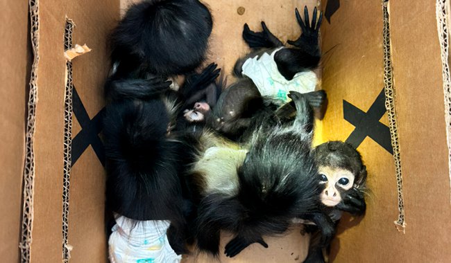 Gracias a un reporte de la Secretaría de Seguridad Ciudadana, el pasado 21 de mayo la oficina de Profepa en Nuevo León rescató a 5 ejemplares de mono araña, Ateles greoffroyi, en estado de desnutrición y 4 ejemplares de sietecolores, Passerina ciris, los cuales eran transportados en cajas de cartón, debajo de las literas de los conductores del vehículo, en la parte posterior de la cabina del camión.
