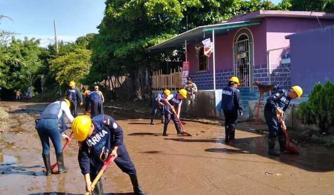 Por otra parte, la Décima Cuarta Región Naval, con sede en Salina Cruz, Oaxaca, ha desplegado personal a los municipios de Juchitán y San Juan Guichicovi, mismos que se encuentran realizando apoyo de limpieza y remoción de escombros.