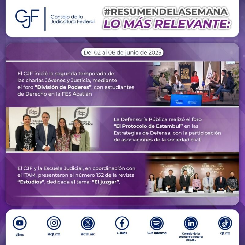 #ResumenDeLaSemana | Consulta las principales actividades y acciones del #CJF y sus órganos auxiliares.