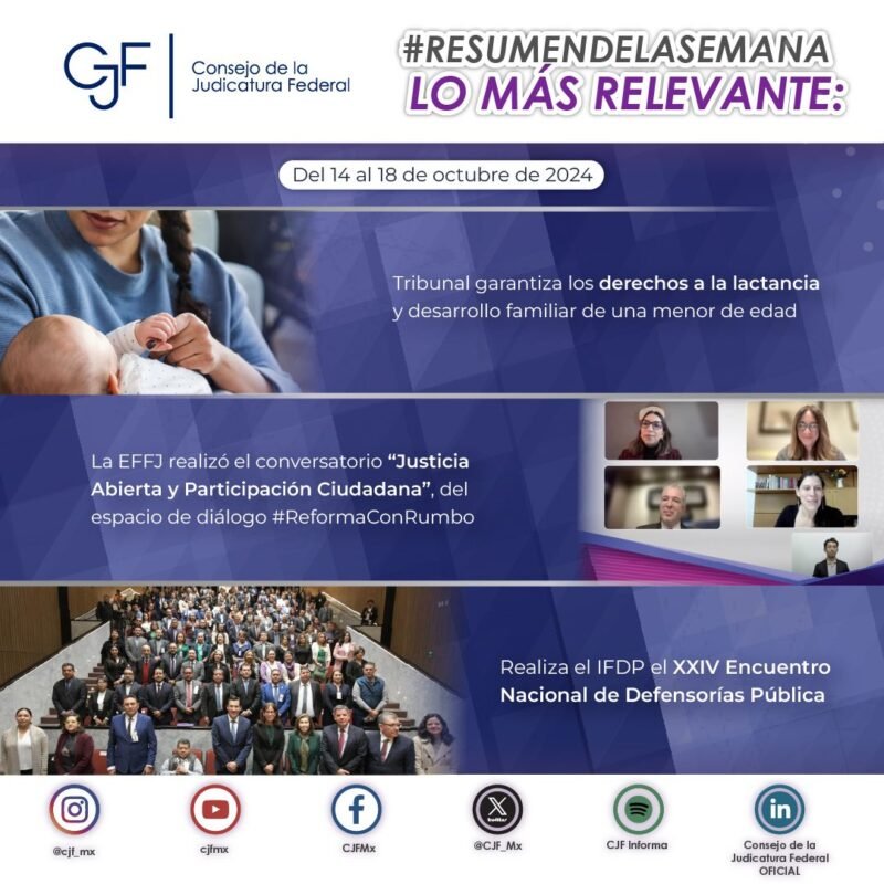 Inicio Consejo de la Judicatura Federal Infografías #ResumenDeLaSemana | Estas fueron algunas de las actividades más relevantes en el...
