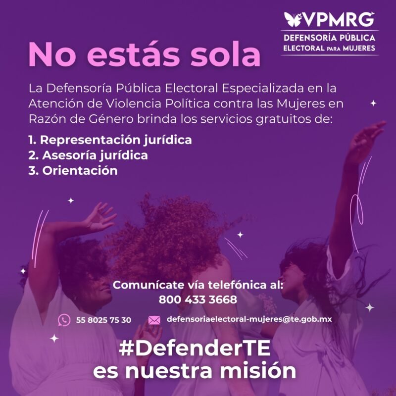 ¿Sabes a quién acudir en caso de violencia política en razón de género? La Defensoría Pública Electoral para Mujeres actúa a petición de las mujeres para proteger sus derechos político – electorales.