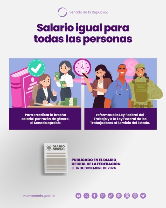 Se han publicado en el Diario Oficial de la Federación las reformas aprobadas por el Senado para erradicar la brecha salarial en razón de género.